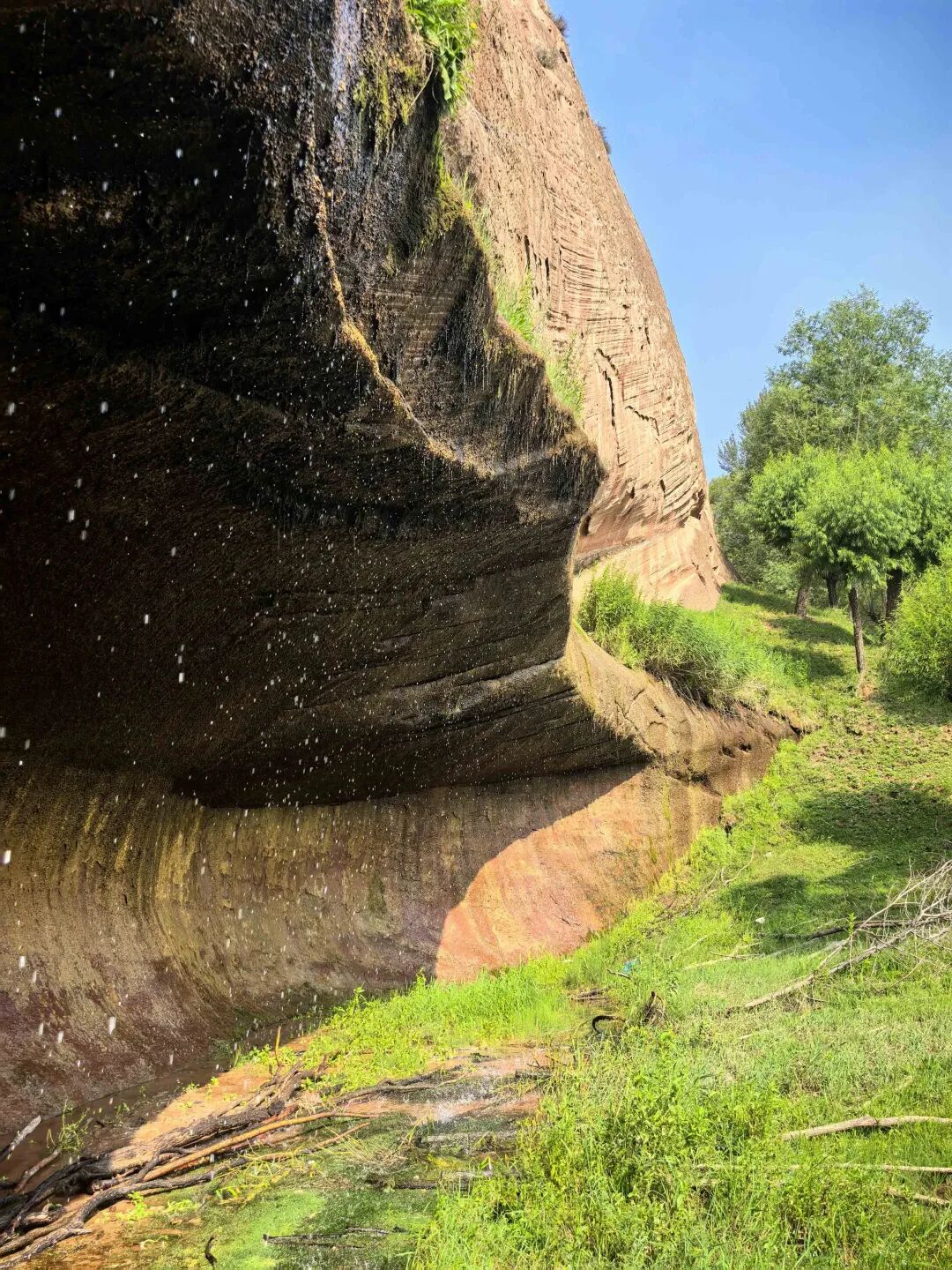 盛夏时节,靖边县黄蒿界镇境内的神水沟迎来最佳观赏期。沟掌沙石突兀,烈日下尽显原始粗粝;岩壁纹理镌刻着岁月侵蚀的苍劲轮廓。清泉自崖缝奔涌而出,倾泻成晶莹水帘,阳光穿过水珠折射出细碎光斑,宛如天然珠帘。水流撞击岩石的“哗哗”声日夜不息,与山的静谧相映成趣。